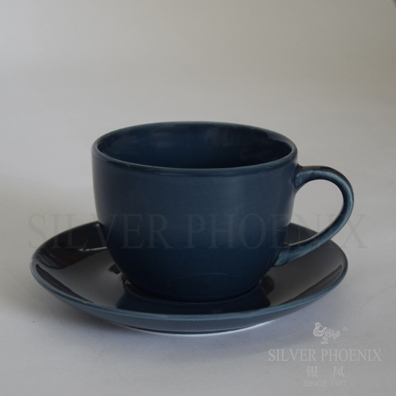 200cc 建益茶杯 & 15cm 碟 灰蓝亚光S30105260001 & S30105260002